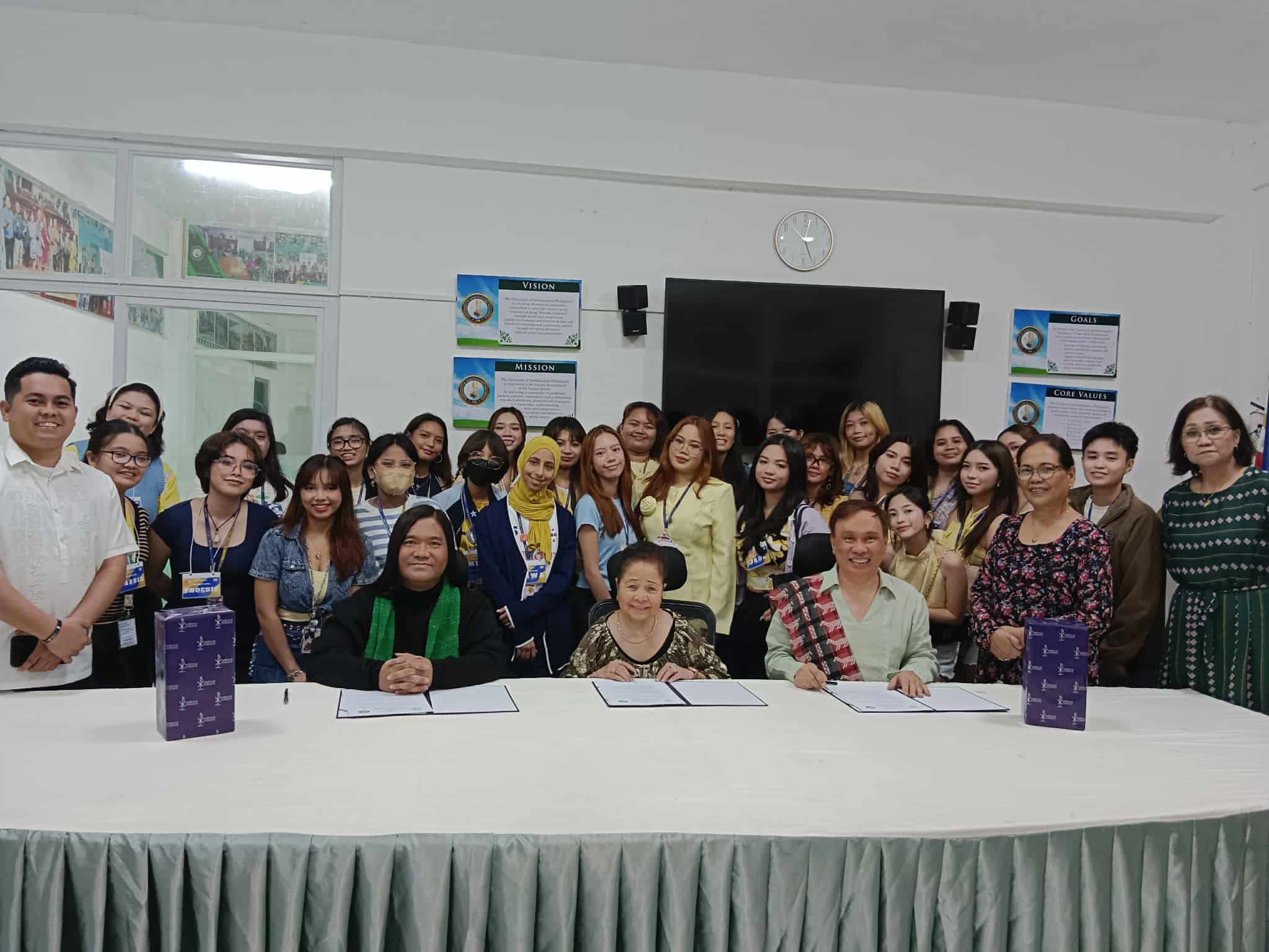 There were three parts in the whole-day Program led by the indefatigable UNEP CCA Executive Director Madam Delicia Alfelor-Tibi and the dynamic and young UNEP President Atty. Remelisa ‘Peachy’ Alfelor-Moraleda, have both an alumna of Maryknoll and Miriam College respectively. Part 1 has covered the Contract Signing of the 3-Year Memorandum of Understanding (in a. promotion of arts and culture in both mentioned institutions; b. faculty development exchange programs and trainings; and, c. student exchange programs for particular specialized courses open for exchanges) set-up at their Accreditation Room Offices. Part 2 takes in the partnership lunch together with the executive officials of the University of Northeastern Philippines (UNEP). Part 3 was held at the UNEP Theater where around 200-seating capacity situated the realization and launch of the UNEP CCA’s concert dance performance. The one-and-a-half-hour (11:30-1:00pm) performance provided stunning, simplistic, yet engaging and timely productions enduring the discipline and strengths of the member-dancers of UNEP CCA. Astounding and exceptional production numbers were